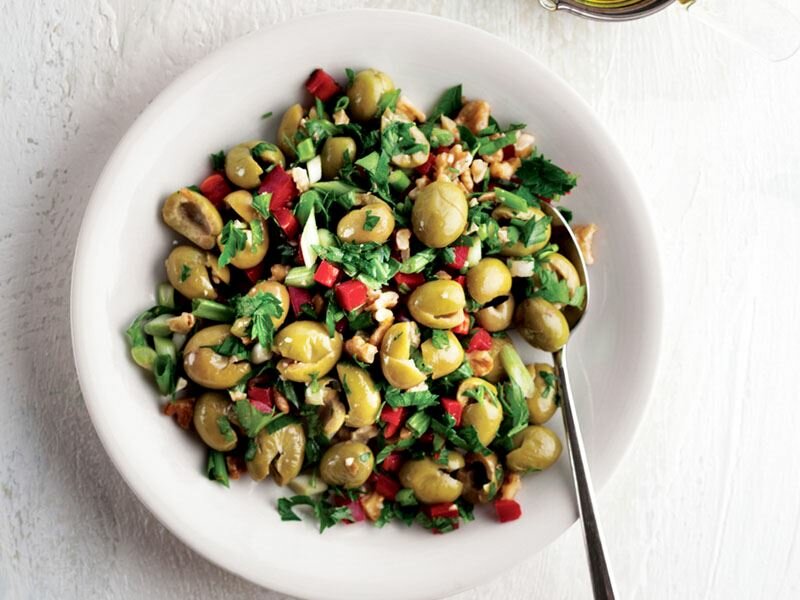 organik zeytin, havuç, taze sarımsak, kapya biber, salatalık(isteğe bağlı) , nane, zeytin yağı, nar ekşisi